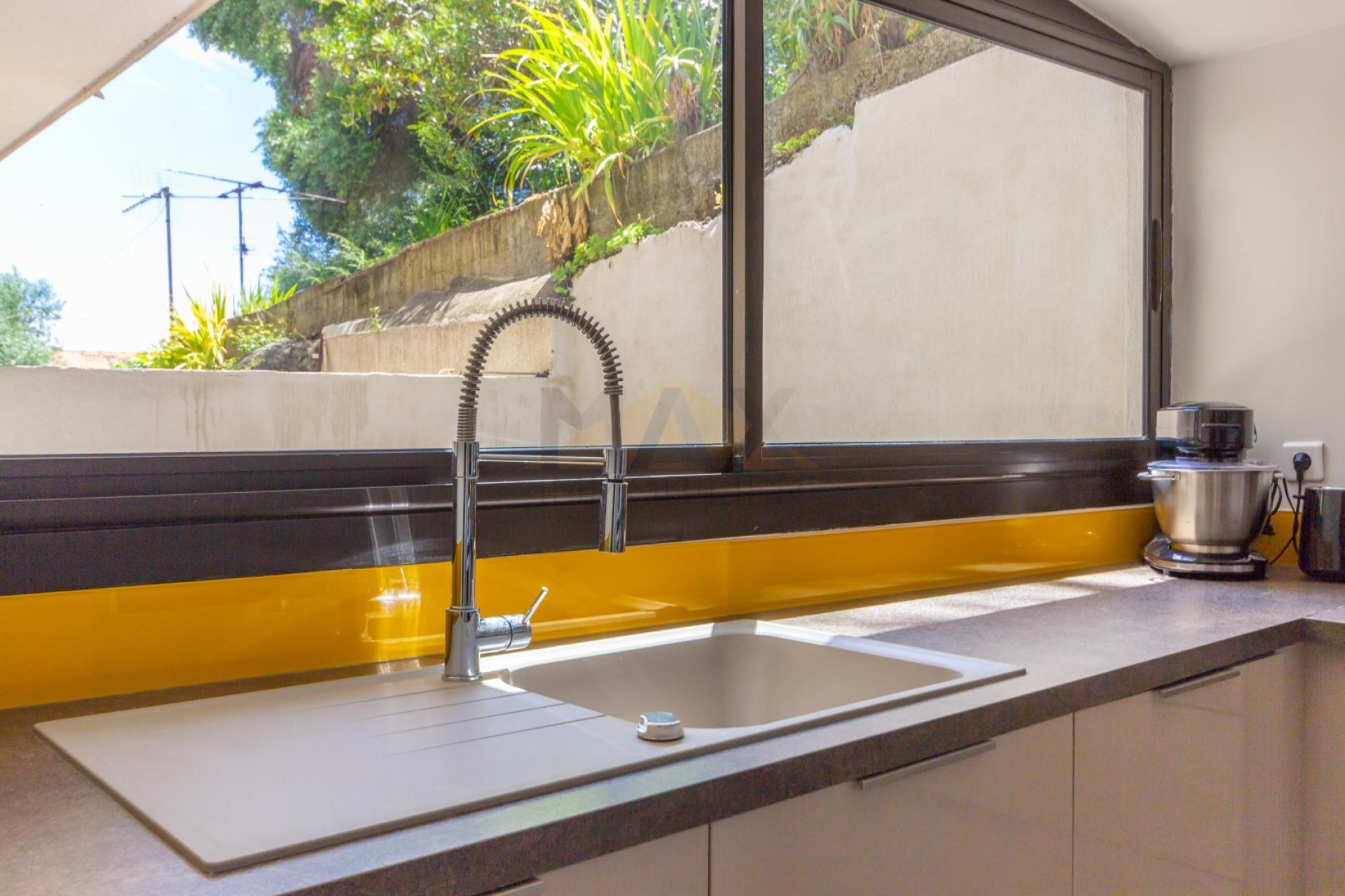 Carrelage, peinture, double vitrage pvc, moustiquaires, volet roulant électrique dans la chambre, cuisine équipée MOBALPA avec électroménager intégré (frigo, LV, plaque induction, hotte, four électrique, four micro-onde, crédence en verre), douche à l’italienne, clim réversible DAIKIN, grand placard mural dans la chambre)