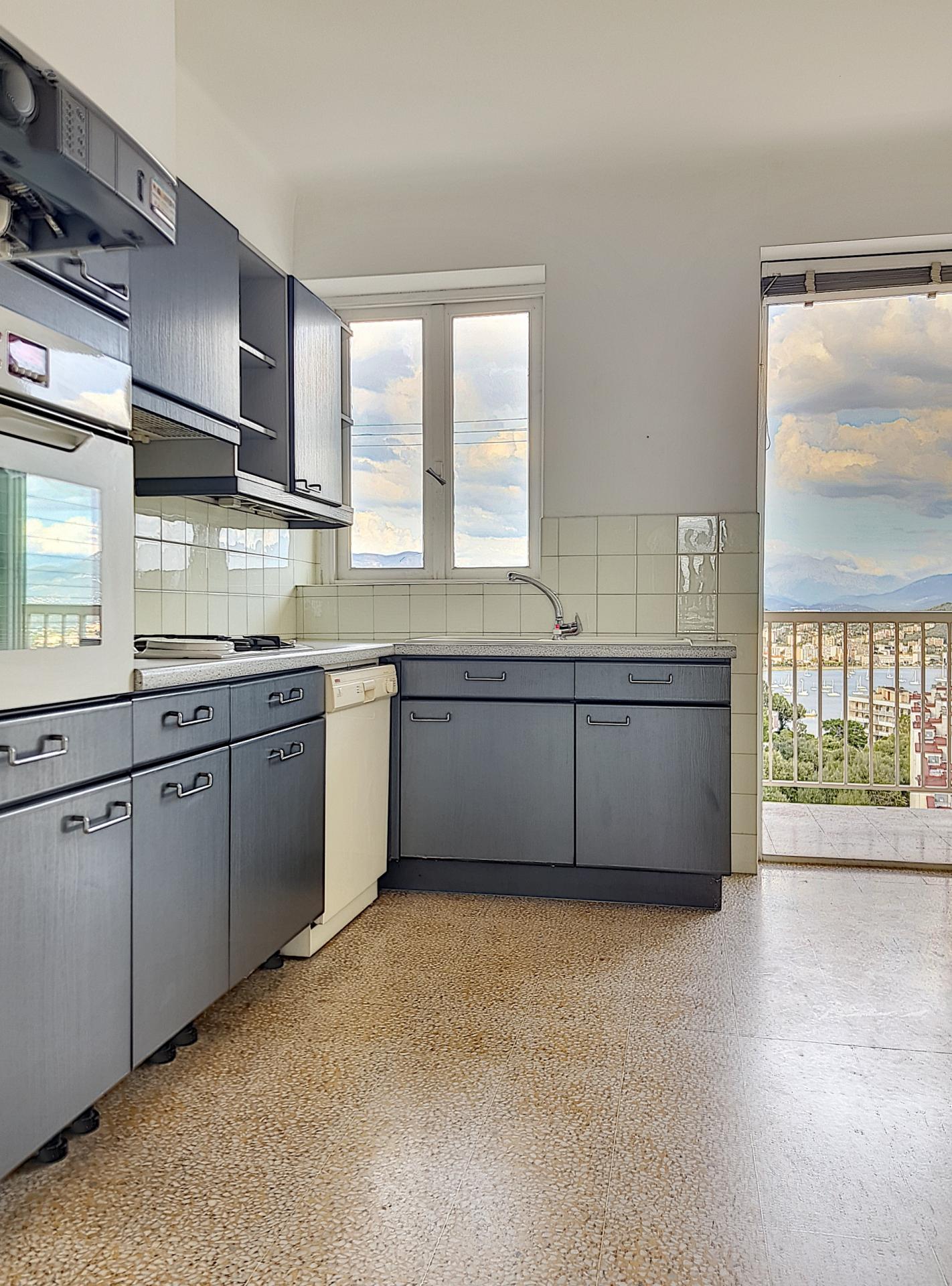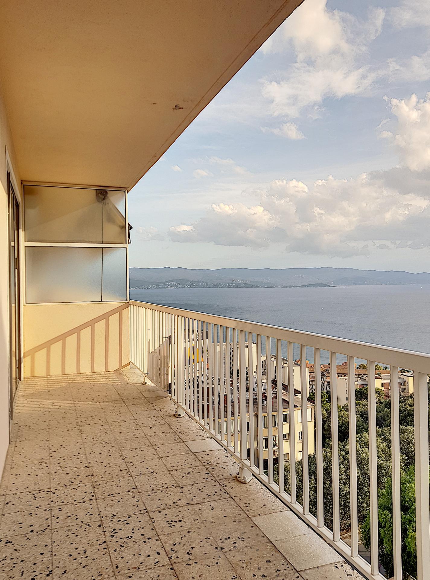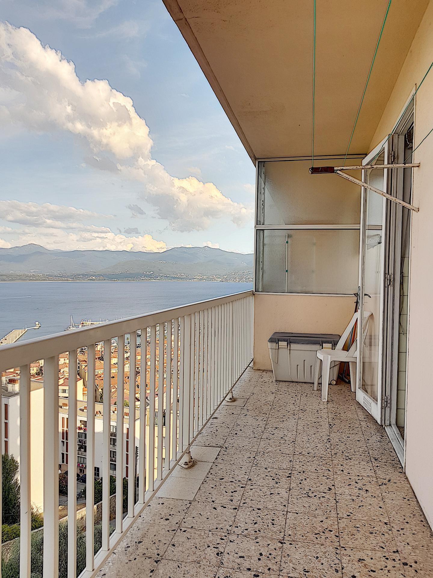 Belle superficie de 64.54m², Traversant N/E et S/O, Il possède deux terrasses offrant chacune d’elle une vue splendide sur la mer, ville et port.