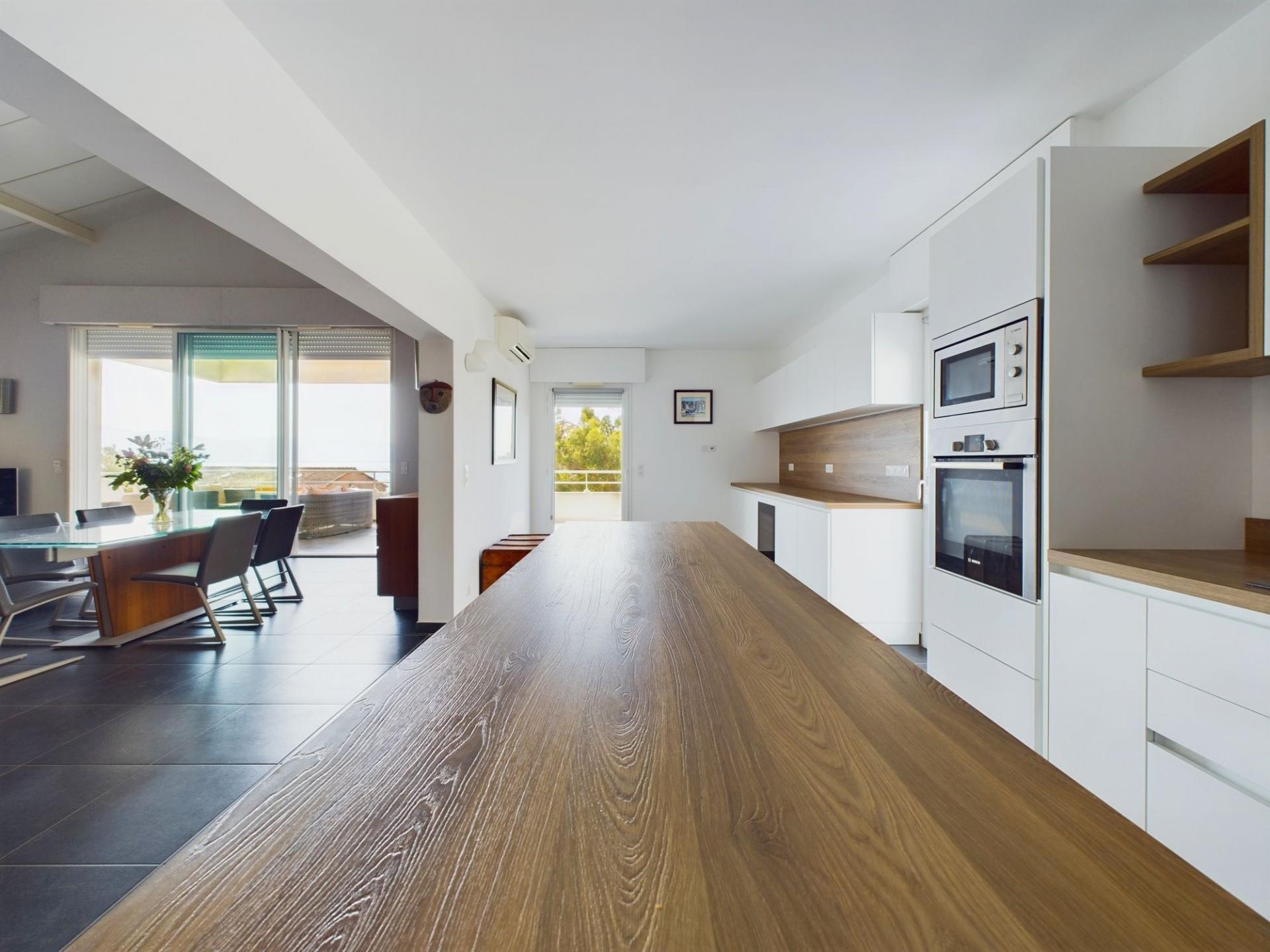 MAX IMMOBILIER vous présente en exclusivité cette villa d’architecte à vendre à Ajaccio, située sur la célèbre route des Sanguinaires, dans le prestigieux lotissement la Colline du Scudo. Cette maison à vendre, construite en 2009, se distingue par ses volumes généreux et son design contemporain. Avec une surface habitable de 260 m², la villa se compose d’un F4 en rez-de-chaussée, avec une vaste terrasse de 78 m², et d’un F3 indépendant en rez-de-jardin, disposant également de sa propre terrasse de 53 m². Le tout est implanté sur un terrain arboré et clôturé de 1501 m², orienté plein sud, offrant une belle vue sur la mer. Idéalement située à Ajaccio, cette maison mitoyenne d’un côté est à proximité des plages et de la propriété historique de Tino Rossi.