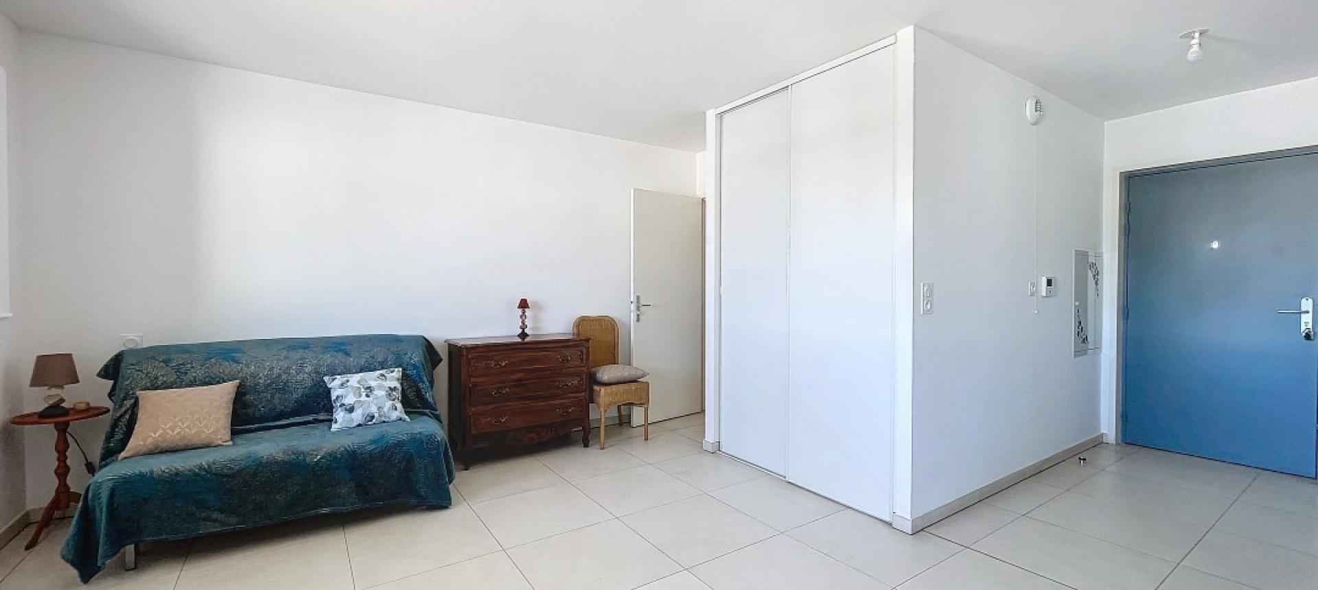 MAX IMMOBILIER propose ce F1 meublé de 31.74 m² en 5ème et dernier étage avec terrasse fermée de 16m² , vue mer dominant la baie de MARINELLA