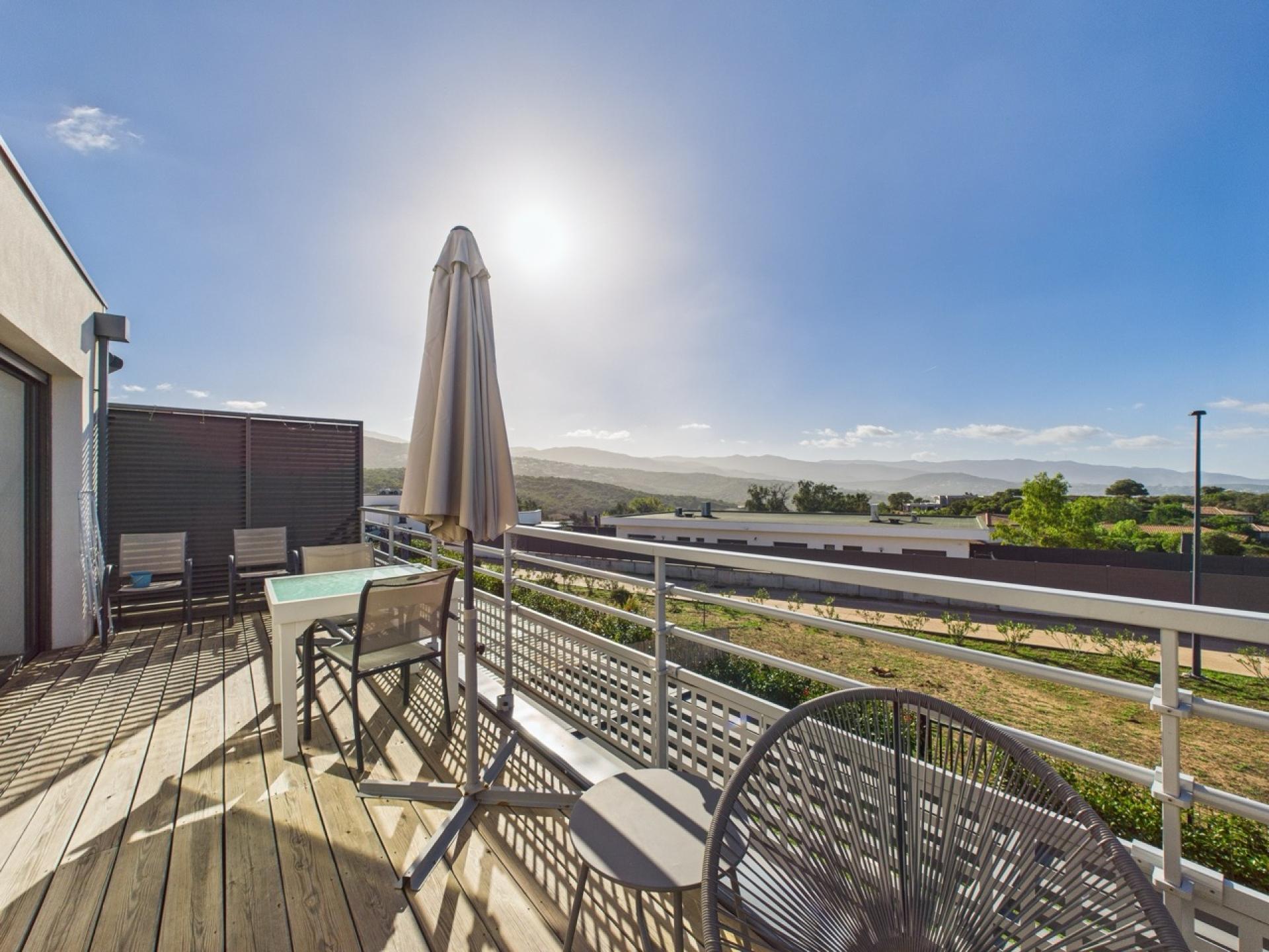 L’un des atouts majeurs de ce bien est sa terrasse en bois de 18 m², un véritable espace de vie extérieur. Parfaitement orientée, elle offre une vue dégagée sur les vallons environnants et constitue un cadre idéal pour profiter du climat méditerranéen tout au long de l’année. Que ce soit pour vos petits-déjeuners ensoleillés ou vos dîners en plein air, cette terrasse saura vous séduire.