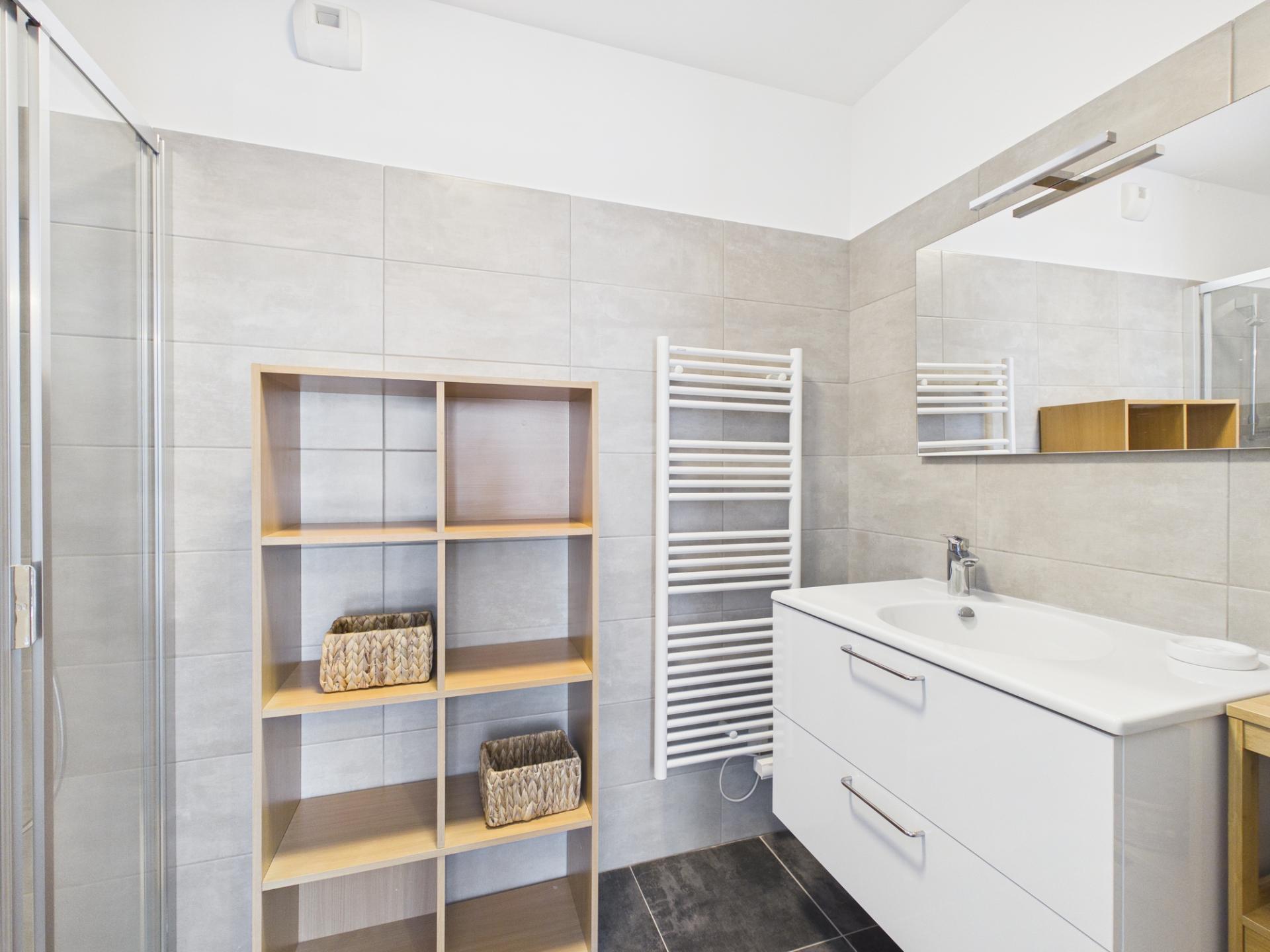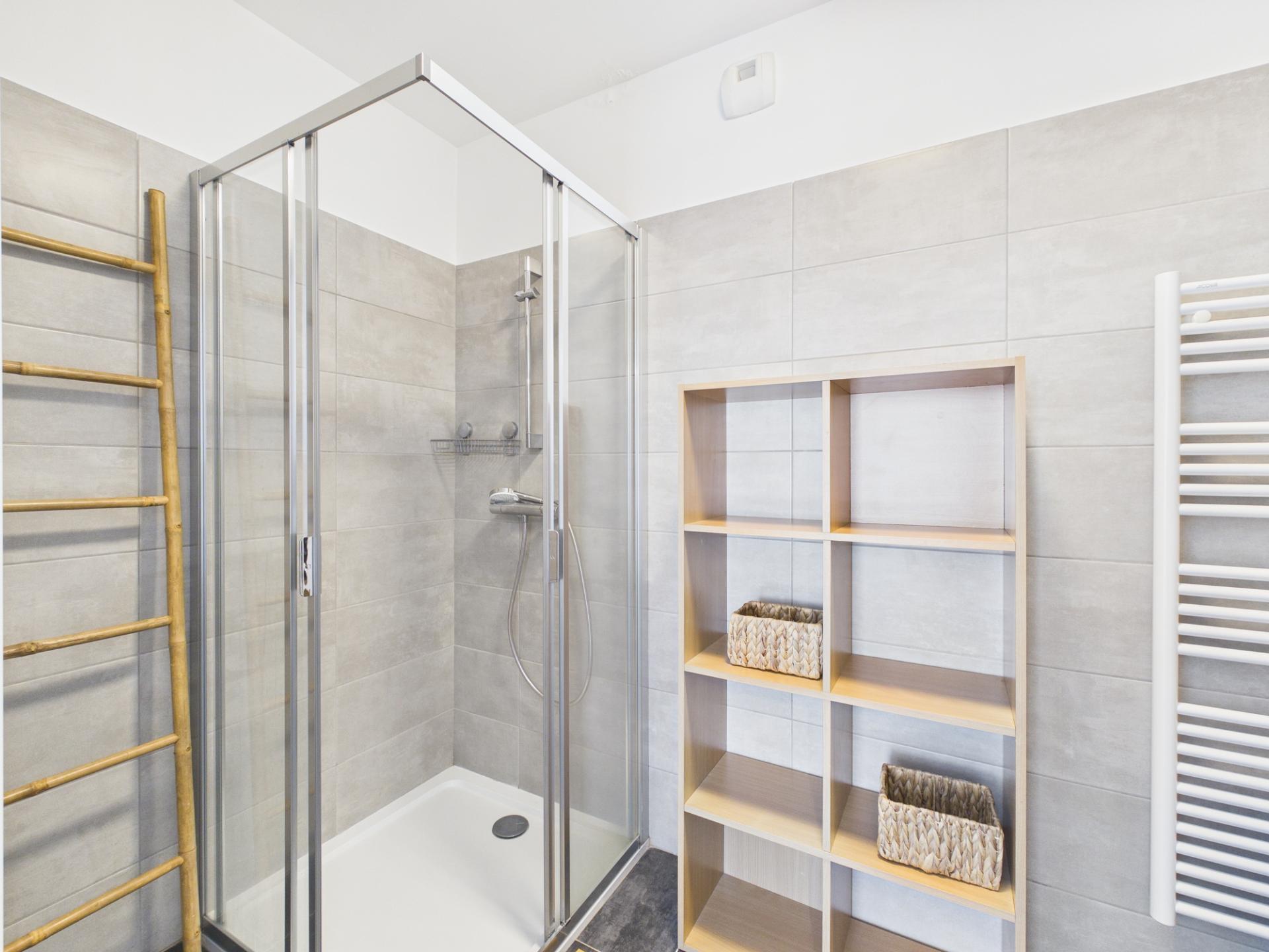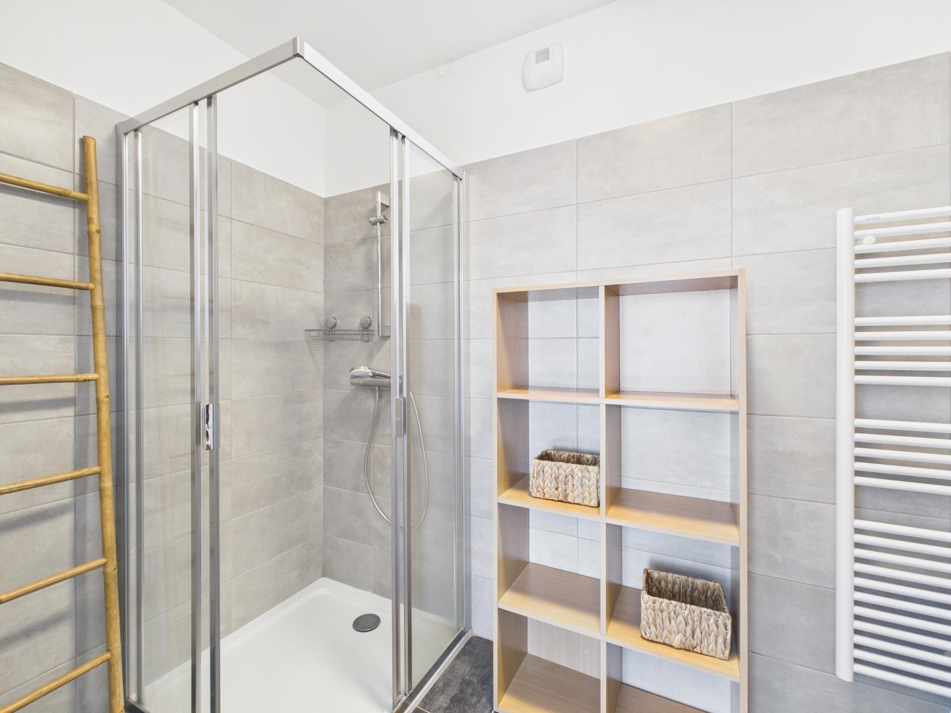 Côté nuit, l’appartement propose une chambre confortable, pensée pour offrir un espace de détente optimale. La salle d’eau, entièrement équipée et moderne, ainsi que les WC séparés, garantissent un quotidien pratique et agréable. De nombreux rangements intégrés ont été prévus pour optimiser l’espace et faciliter l’organisation, un détail qui fait toute la différence au quotidien.