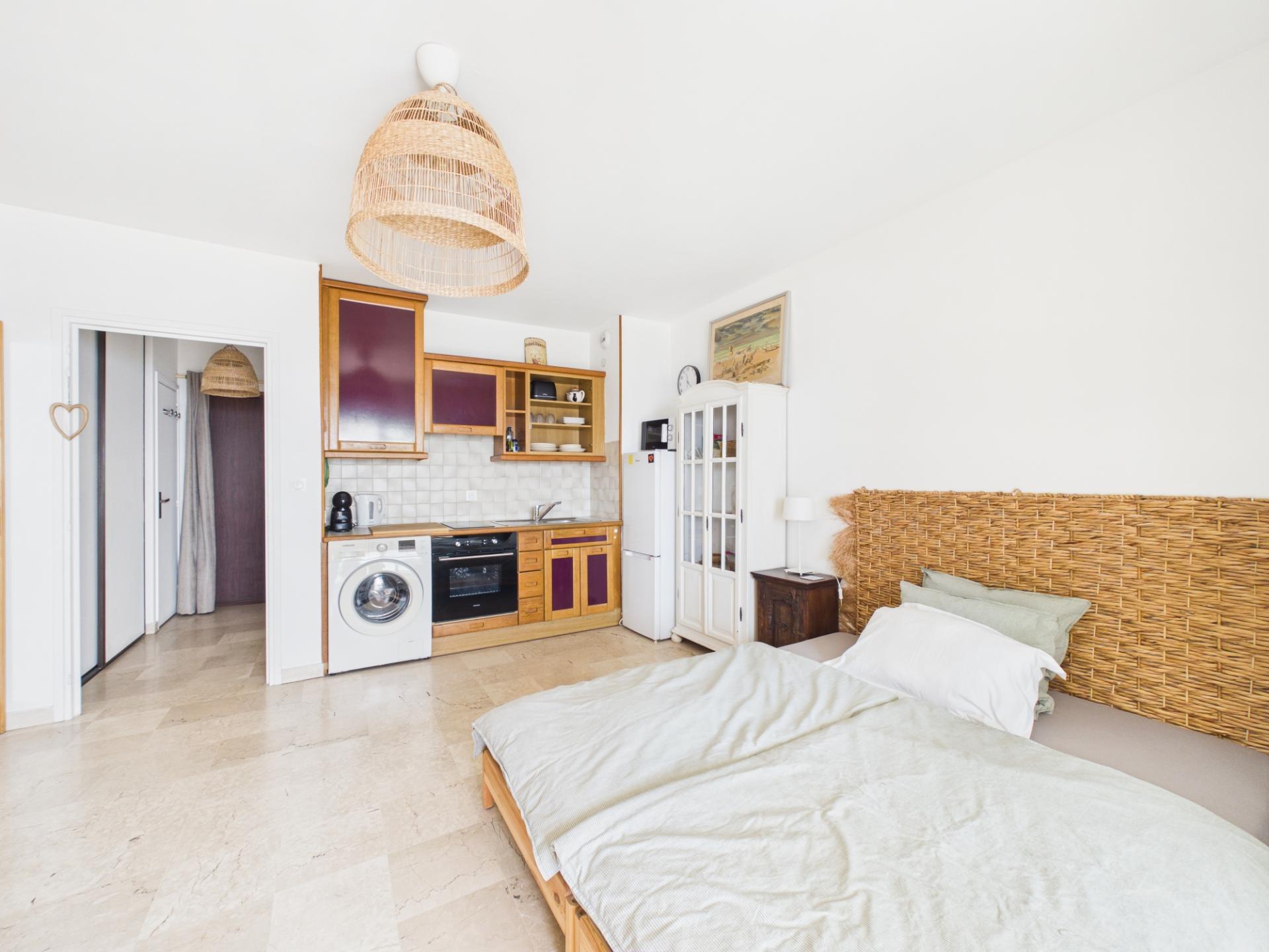 Un studio fonctionnel avec extérieur et vue mer