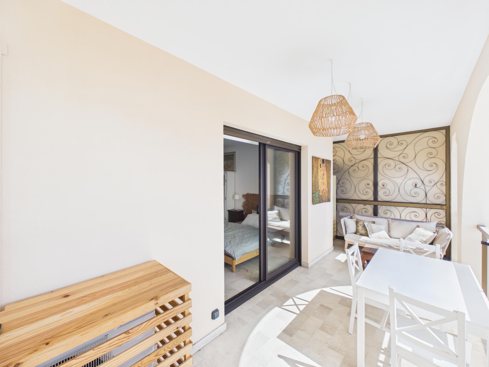 Le véritable atout de ce bien réside dans sa terrasse d’environ 12 m², exposée sud-est. Cet espace extérieur offre une vue mer dégagée, un luxe rare pour une surface de cette taille, et un cadre de vie agréable en toute saison.