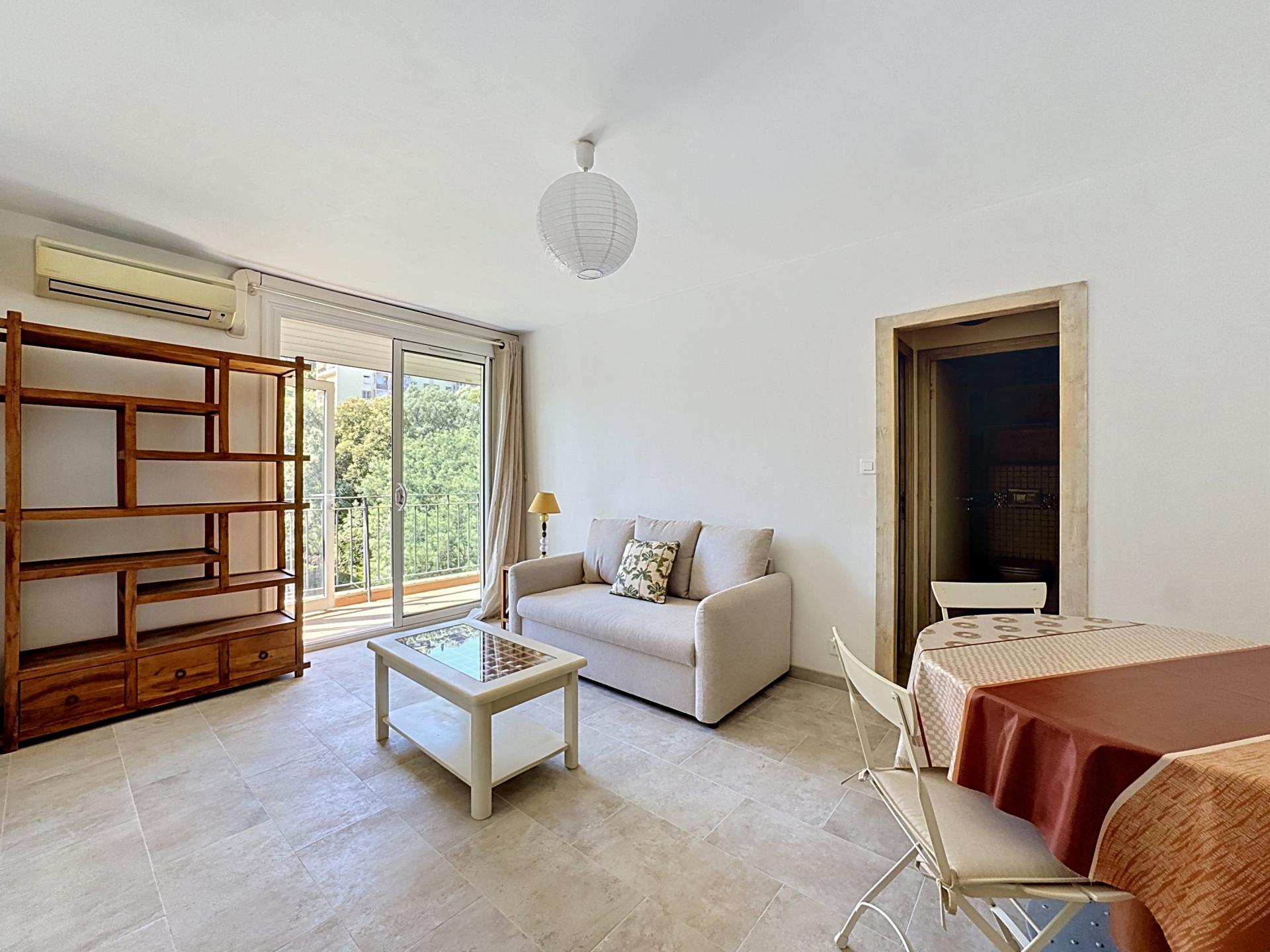 MAX IMMOBILIER propose à la location, cet appartement de type F2 meublé, d’une superficie de 39.11m², situé sur les hauteurs de la ville d’AJACCIO, juste au-dessus du lycée LAETITIA, à 2 minutes en voiture du centre-ville.